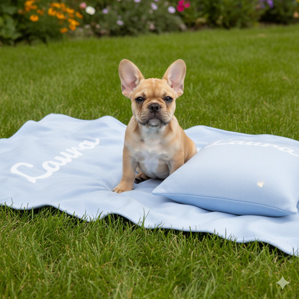 VÀlj fÀrg, skriv in ditt husdjurs namn, och fÄ hem en filt som passar lika bra i hundbÀdden som i soffan. En extra trygg plats dÀr doften av hem, matte och husse alltid finns nÀra.