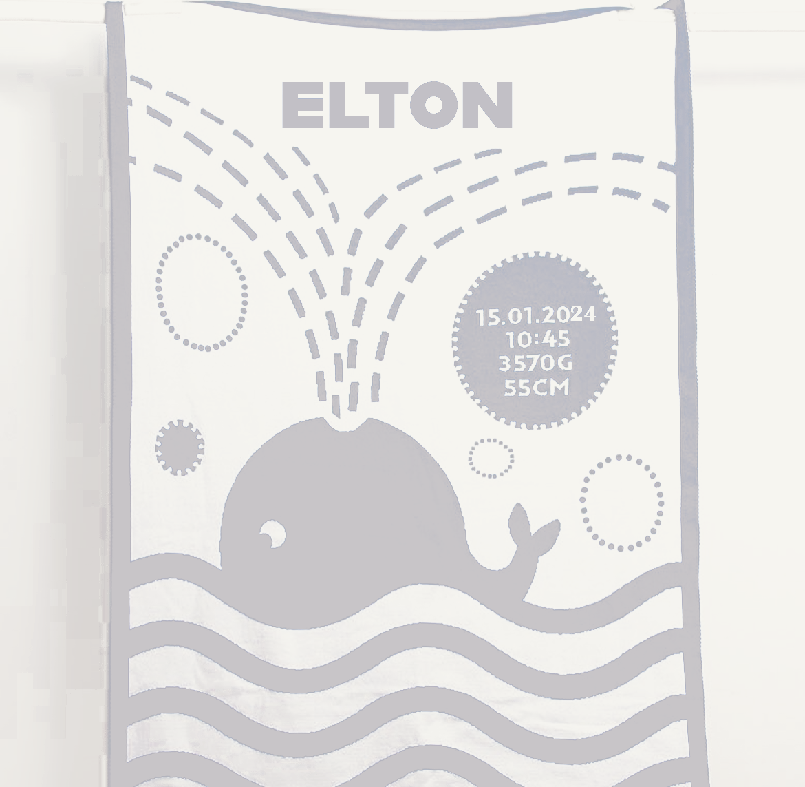 Möt "Big Love" – filten som fångar allt det viktiga från den stora dagen! 🐋💛 Barnets namn, födelsedatum, tid, vikt och längd vävs in i mjuk, ekologisk bomull tillsammans med en bedårande val som sprider kärlek och trygghet. En personlig filt som passar lika bra för mysiga stunder som en minnessak att vårda för alltid. Perfekt för att fira den lilla med en stor dos kärlek! Du hittar ingen bättre dop- eller namngivningspresent!🌟 Tillverkad med omsorg i Europa.