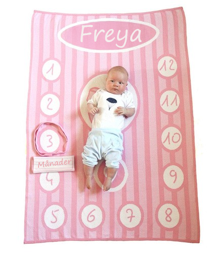 Välj en färg på filten, skriv in barnets namn. Sen är det bara att vänta in den gosigaste filten.